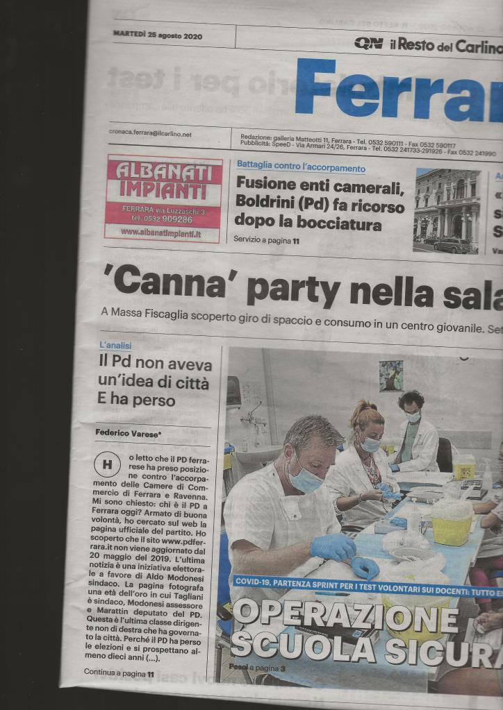 Questa mattina ho letto che il PD ferrarese ha preso posizione contro l’accorpamento delle Camere di Commercio di Ferrara e Ravenna. Mi sono chiesto: chi è il PD a Ferrara oggi? Armato di buona volontà, ho cercato sul web la pagina ufficiale del partito. Ho scoperto che il sito www.pdferrara.it non viene aggiornato dal 20 maggio del 2019. L’ultima notizia è una iniziativa elettorale a favore di Aldo Modonesi sindaco. La pagina fotografa una età dell’oro in cui Tagliani è sindaco, Modonesi assessore e Marattin deputato del PD. Questa è l’ultima classe dirigente non di destra che ha governato la città. Perché il PD ha perso le elezioni e si prospettano almeno dieci anni di governo leghista? Il bello di intervenire tardi in questo dibattito promosso da Mario Zamorani è di non dover ripetere le analisi di chi mi ha preceduto. Una per tutti: Alessandra Chiappini, la studiosa che ha diretto per tanti anni con passione e competenza la Biblioteca Ariostea, ex assessore alla pubblica istruzione e alla famiglia. Nel suo testo sono snocciolate molte ragioni della sconfitta: scandalo Coopcostruttori, Cassa di Risparmio (“una ferita ancora sanguinante”), sanità (mancano trecento posti letto), gestione del post-terremoto… Vi consiglio di leggerlo. Aggiungo: Palazzo Specchi, politica museale inadeguata, fino alla crisi del “pattume”. La lista purtroppo è lunga.