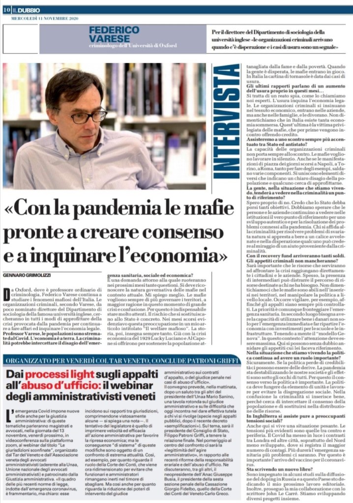 November 16, 2020November 24, 2020 federicovarese Pandemia e mafie. Intervista a Il Dubbio di Gennaro Grimolizzi, 11.11.2020 Il DubbioDownload Share this: Share on X (Opens in new window) X Share on Facebook (Opens in new window) Facebook Like Loading...