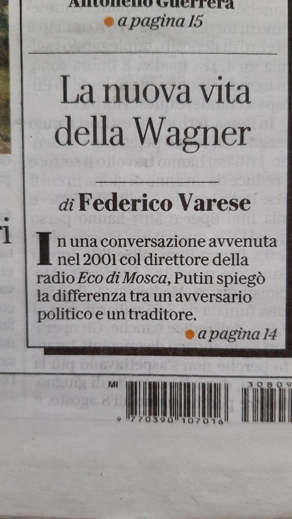 Facendo eco a sé stesso, Putin ha evocato in tv il 24 giugno 2023 il “tradimento” e “la pugnalata alle spalle” dei mercenari del gruppo Wagner dopo l’ammutinamento di giugno. Eppure Wagner continua a operare in Russia, in Bielorussia, in Medio Oriente e nell’Africa centrale e occidentale. Come è possibile che il regime non sia in grado di punire un traditore, come fece con l’oligarca Boris Berezovsky, verso cui erano dirette quelle parole ventidue anni fa?